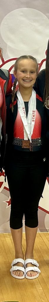 Emerson, daughter of Kelly Smith, competed at NGA State Gymnastics meet on 4/20. Emerson finished 5th on Beam, 6th on Vault, and 7th All Around. She qualified for Regionals and will be competing in New Orleans on 5/18. Go, Emerson! We’ll be cheering for you!