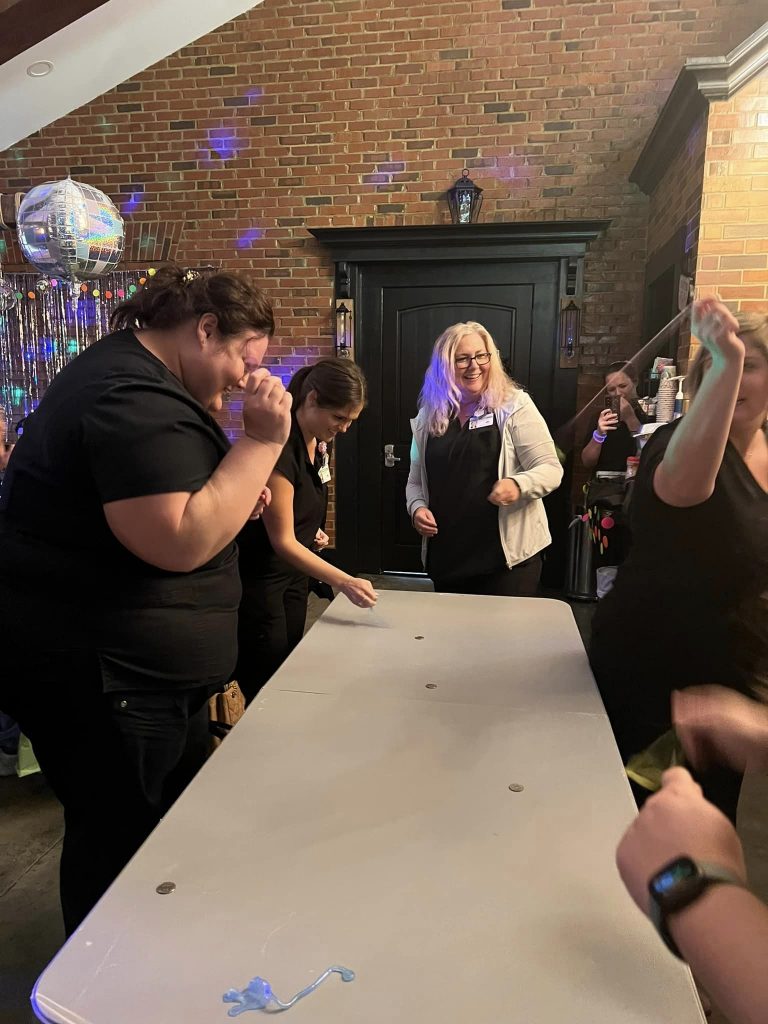 Low quality images, high quality company! We put on our boogie shoes and had us a groovy time at our Disco Party HooHoo Night! We danced, we ate Olive Garden, we played games…we had a blast! That’s what HooHoo night is all about! Getting together, having a great time and showing our employees how much we appreciate them and ALL that they do! We can’t wait until the next one!