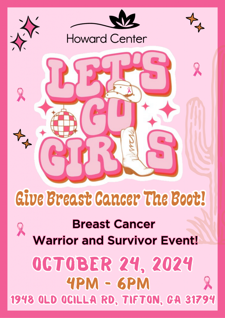 Our annual Breast Cancer Warrior and Survivor Event will be held on Thursday, October 24th from 4pm-6pm at The Howard Center in Tifton!