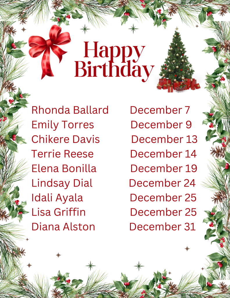 December Birthdays and Anniversaries!