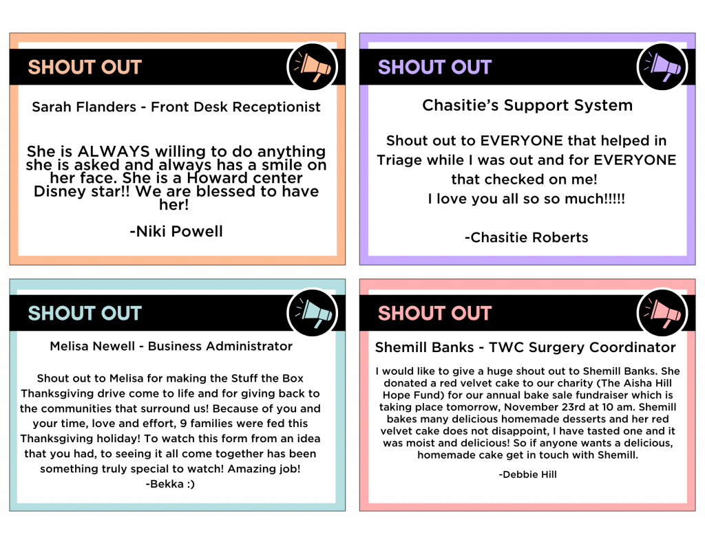 TWC: Shemill BanksI’m delighted to share that Shemill, our TWC Surgical Coordinator, has once again demonstrated exceptional dedication and teamwork this month. Whether she’s baking cookies, stocking supplies, or mastering the NST procedures for patient care, she has been a beacon of reliability and enthusiasm. She even took the time to decorate for our newest employee’s birthday, showcasing her thoughtfulness and commitment to our team spirit.
