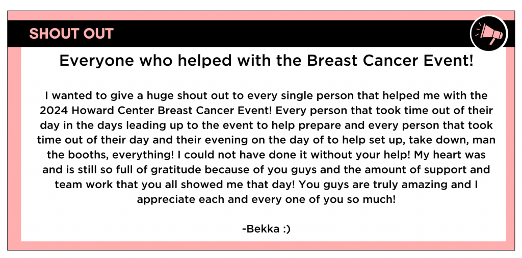 I’m thrilled to announce Bekka Reese as our Employee of the Month for Marketing! Bekka is an outstanding employee who takes immense pride in her work. She displays incredible dedication. In October, Bekka successfully organized our breast cancer event, a testament to her exceptional skills. While many of our amazing employees contributed, Bekka’s leadership and enthusiasm shone through, particularly in managing our events and social media. She has an exceptional ability to make everyone she interacts with feel special and valued. Whether she’s planning a major event for The Howard Center, helping a marketer in need, or handling the smallest details, Bekka always puts her heart into her work. We are grateful to have her on our UOG team and appreciate her remarkable contributions. Congratulations, Bekka!