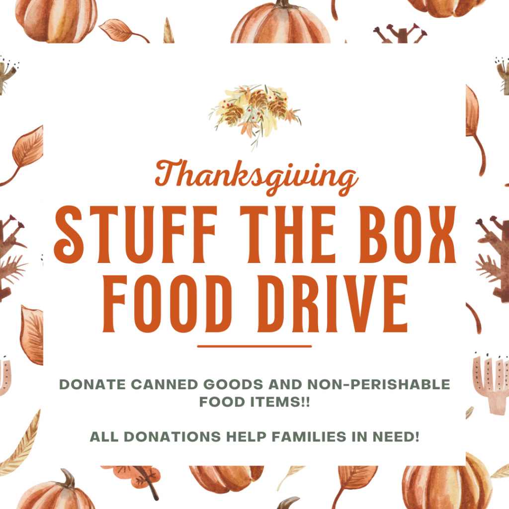 It’s called STUFF THE BOX! For the month of November, we are going to be collecting Canned Food and Non-Perishable items to donate to families in need for Thanksgiving! The difference? The food is going to go DIRECTLY to the families who need it!