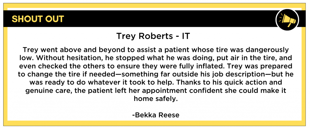 Front Desk: Alex LambThis month, we’re proud to recognize Alex Lamb for her incredible dedication and unwavering positivity. Alex has consistently stepped in wherever needed—covering the front desk, answering calls at the call center, escorting patients to where they need to be, all while making sure her regular job is taken care of and our patient referrals are sent out.