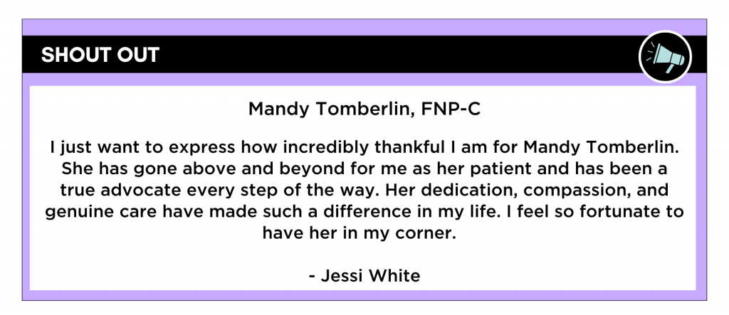 This month, we’re proud to recognize Amy Atkins as our Employee of the Month. Amy is always my right hand, but this month she has truly gone above and beyond. She traveled to Covington to cover in WCAS and has taken on the challenge of learning how to handle colpos and consults. She even came in on her days off and skipped personal appointments to make sure she was prepared and available when we needed her most.