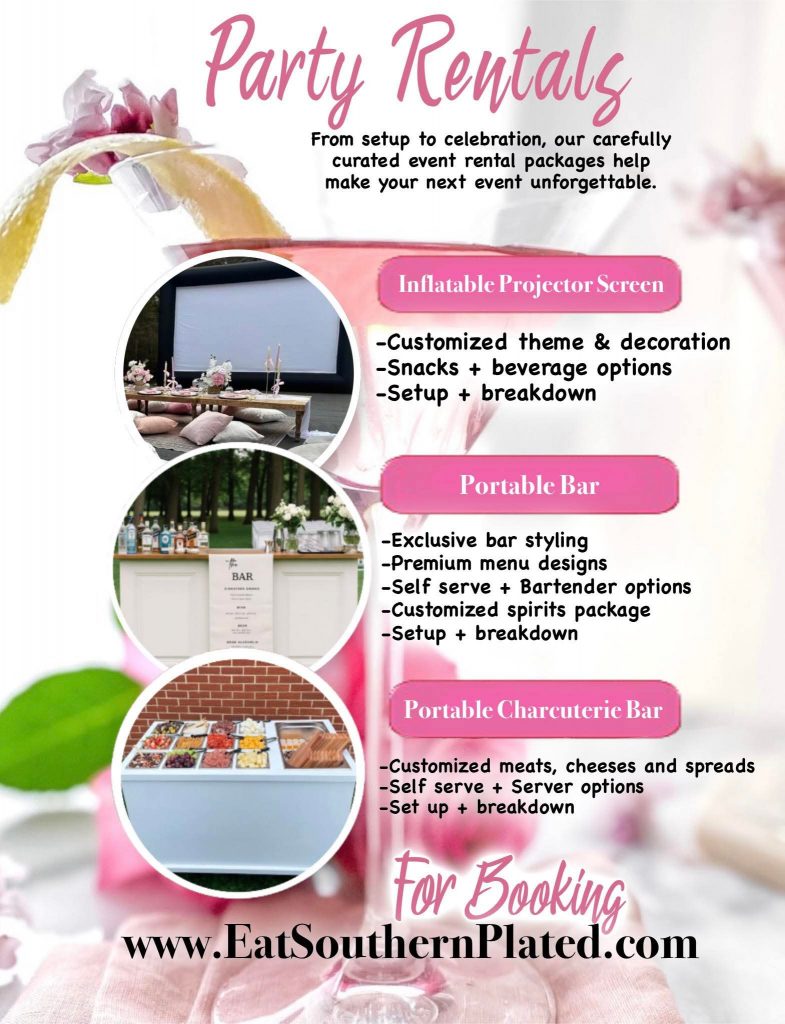 “I would like to congratulate Shemill Banks on her party rental/catering business named Eat Southern Plated!! I am very excited for her. I have seen her great culinary cooking/catering skills and beautiful decorations, not to mention she also bakes delicious cakes. If you want your event catered to perfection, please don’t hesitate to book her for your party rentals and catering needs.”