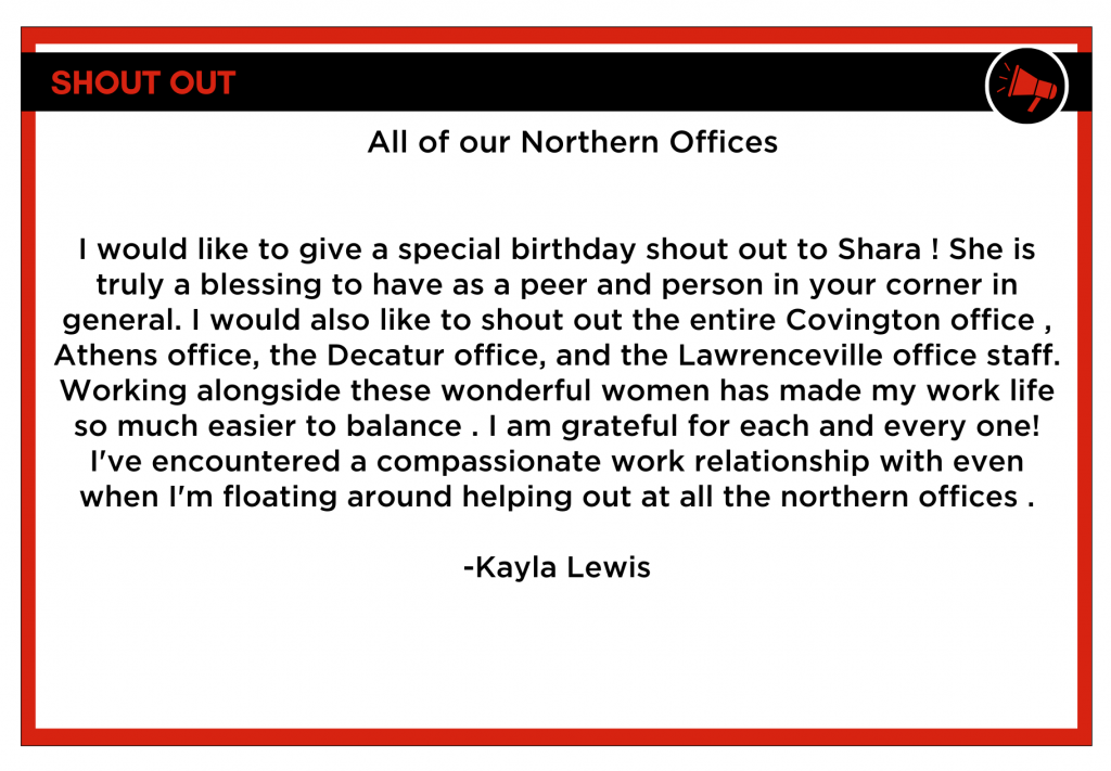 They went above and beyond by traveling to Athens to help move and set up our new office. This wasn’t part of their normal job duties, but they stepped up anyway. Even though a few unforeseen issues came up and things didn’t turn out perfectly, they still sacrificed time with their families to help get the new Athens location ready. Their effort, teamwork, and willingness to jump in wherever needed did not go unnoticed.