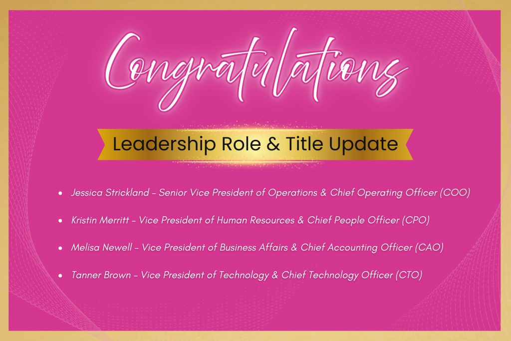 As part of our continued growth and alignment of leadership responsibilities, the following role and title updates have been formally implemented: