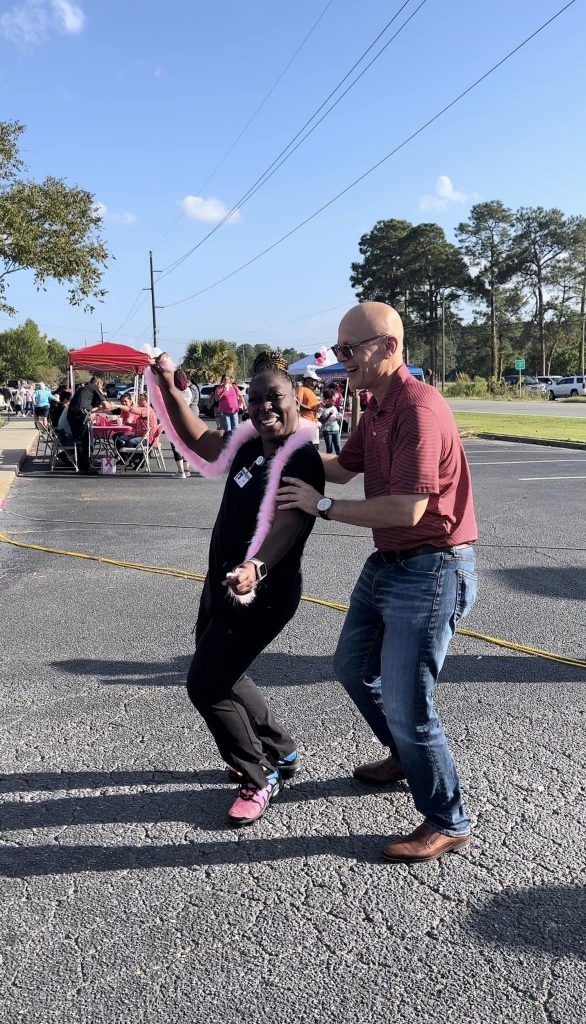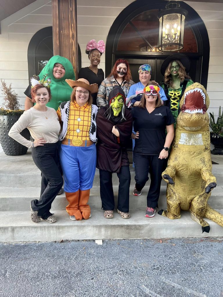 We’d like to send a special shout out to the Waycross Office Girls as well! These Scream masks and knives were all bedazzled by hand and each color represents the ribbon colors for gyn cancers.