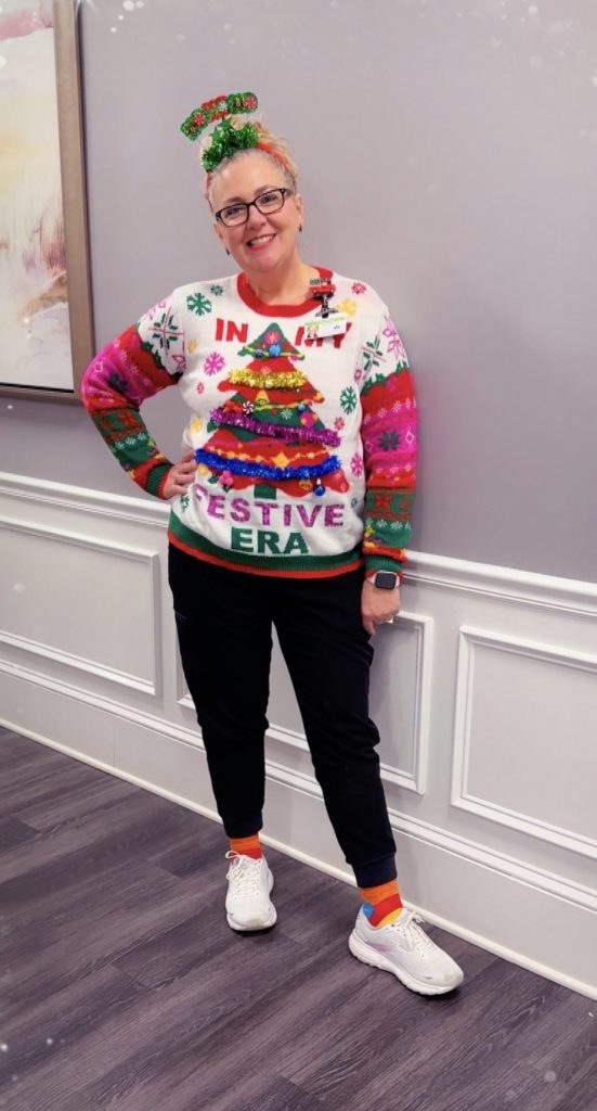 Then, we Decked the Halls (Wearable Style) with garland, bows, ornaments, and all the festive flair—because who says you can’t decorate people?!