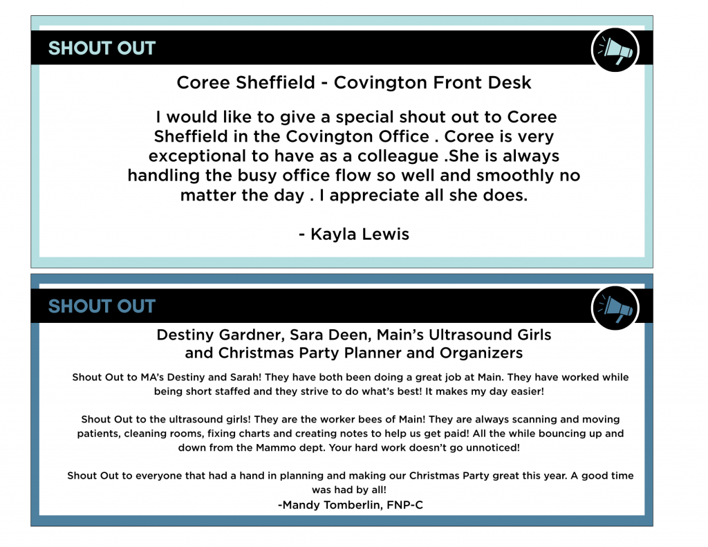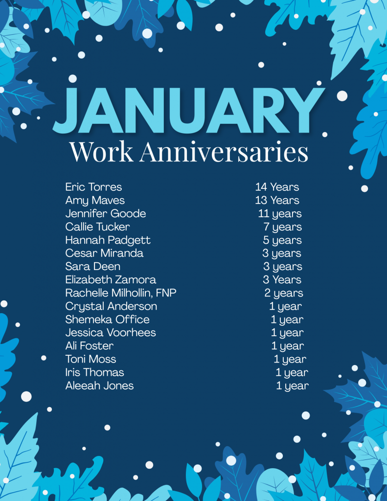 Congratulations to everyone mentioned below! Thank you so much for your hard work and dedication to The Howard Center and Tifton Woman’s Center! We appreciate you and all that you do for us and our patients!