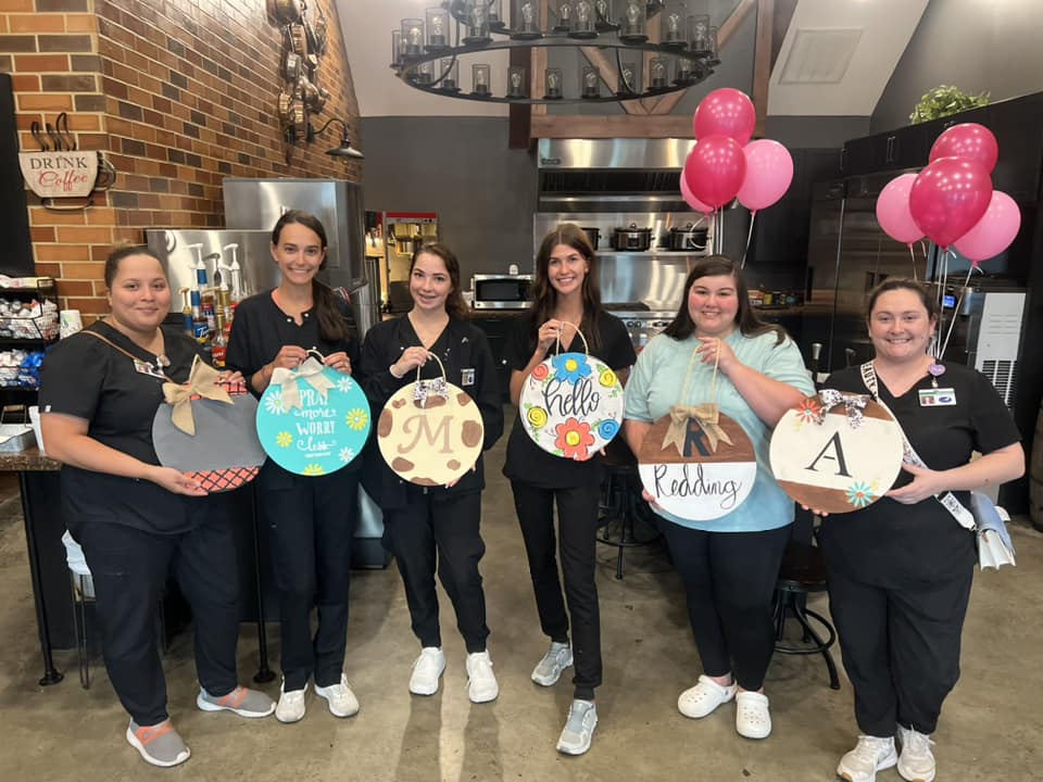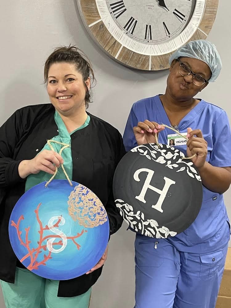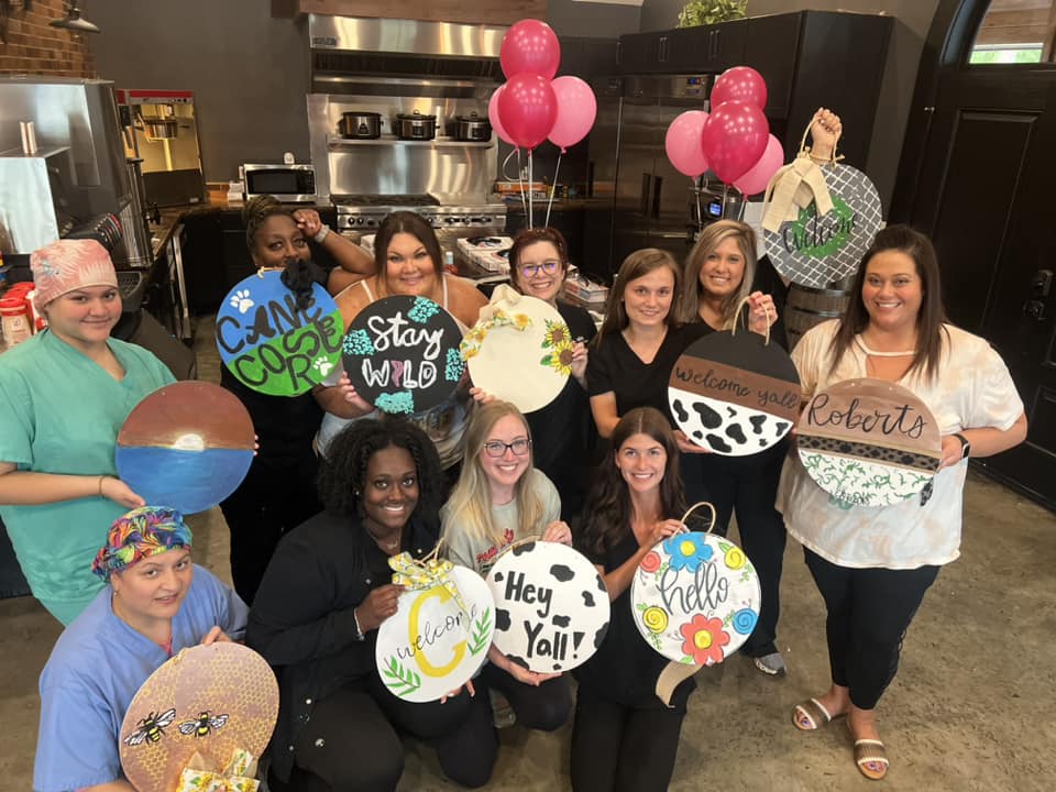 On Tuesday, July 11th, were able to celebrate our employees at our Main office and Tifton Women’s Center by having our first employee appreciation night since 2020! We ate pizza and goodies, painted door hangers and had a great time spending time with each other and bonding over the fact that most of us weren’t the best at painting and then there’s Mckinley…she’s apparently a professional door hanger painter or something lol. We can’t wait to celebrate our outlying clinics (dates and details to come) and have more HooHoo Sister Nights together!
