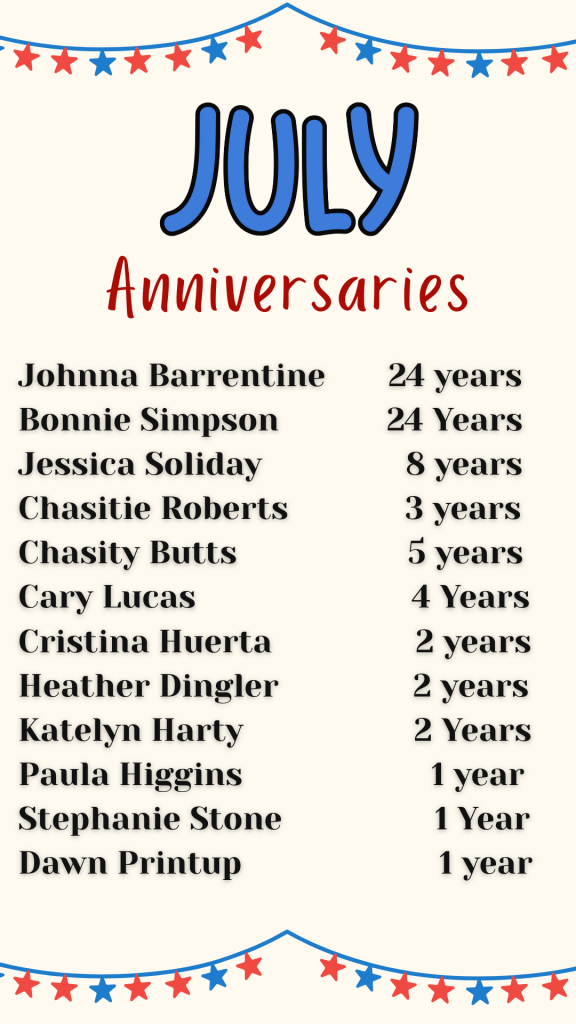 It’s time to announce of Employee Excellence Award Winners and our Shining Star for June! Congratulations, everyone! Thank you so much for ALL that you do!