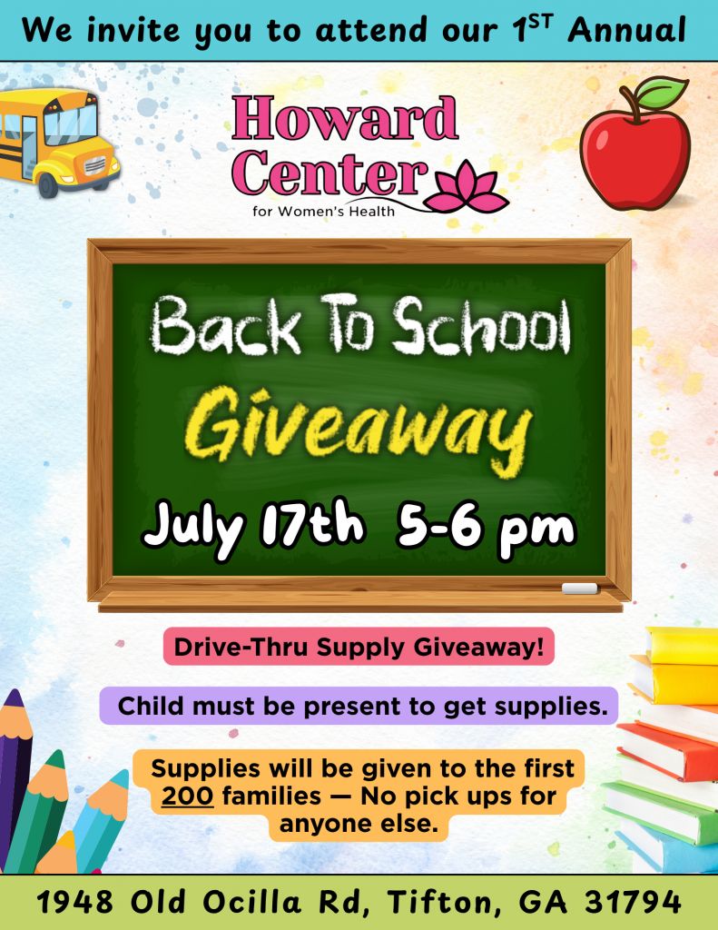 We’re beyond excited to host our 1st Annual Back to School Supply Giveaway here at The Howard Center in Tifton!